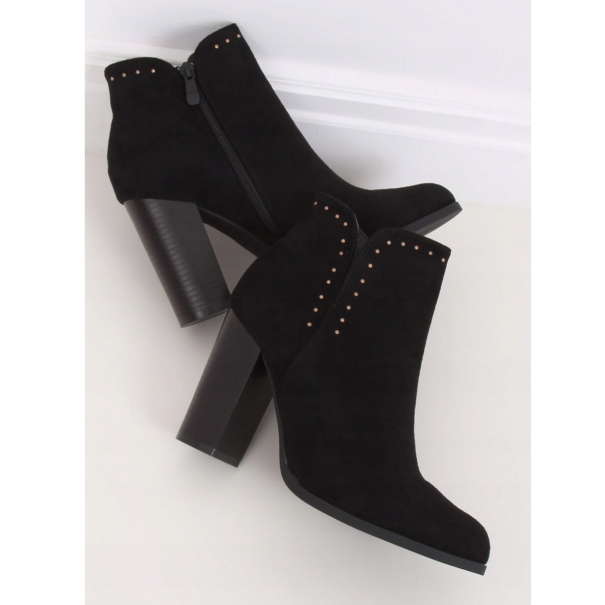 UK11P Black suede ankle boots are an ideal choice for women looking for elegance and comfort every day. Their simple design works perfectly with a slim 9.5 cm heel, which adds style and lengthens the silhouette. A subtle cut-out decorated with rhinestones makes this model stand out from the rest, adding character to any styling.