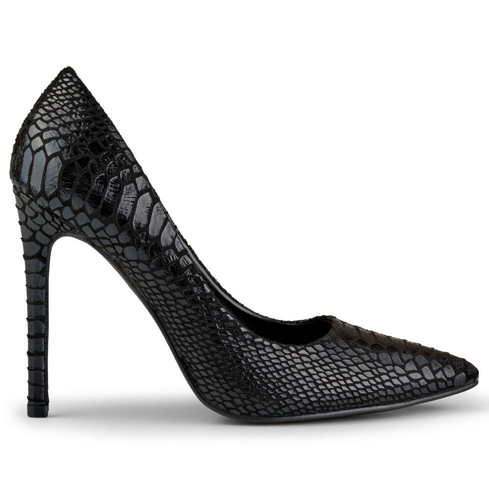 Carefully made and looking great on the leg, black high heels with a delicate pattern are footwear ready for big events, business meetings or other special occasions when we want to feel special and elegant. The heel height will provide a beautiful silhouette and lengthen the legs, and the classic black color will make it easier to match them to various outfits.