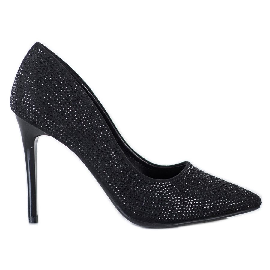 We present black crystal stilettos from SHELOVET – a real gem among elegant women's footwear. These timeless pumps are the perfect choice for evening outings, parties and various types of celebrations.