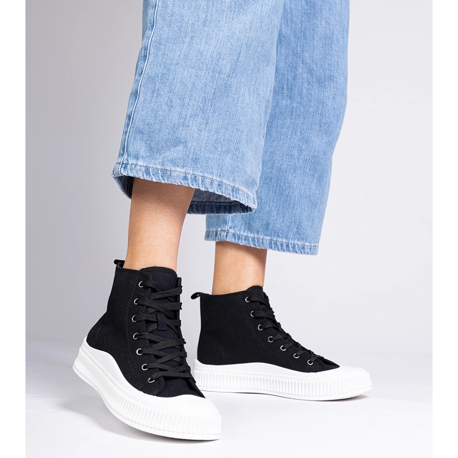 Black high-top sneakers on the Guerrino platform are a proposal that will certainly appeal to every woman who values both comfort and a fashionable look. Perfect for hot summer days, these sneakers combine a classic design with a modern element in the form of a high sole, which will add a few centimeters of height, while ensuring stability and comfort of wearing.