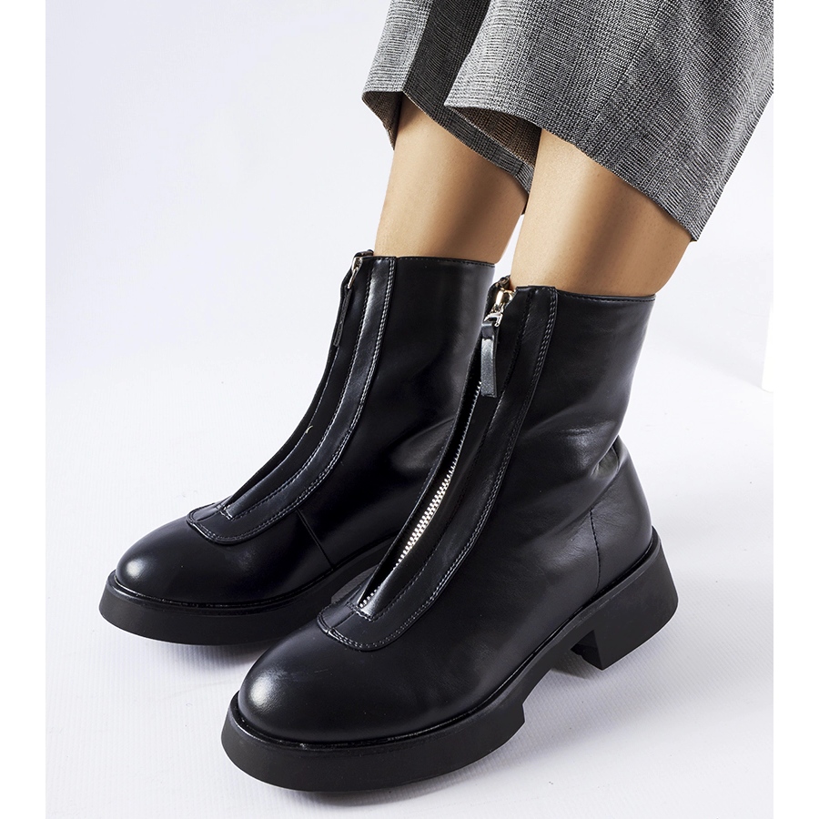 Classic, timeless women's Black women's boots - ideal for the autumn -inn season. Made of ecological leather, insulated interior provides pleasant warmth, and a practical zip on the side makes it easier to put on quickly. A stable 4.5 cm high platform adds lightness and convenience when walking.