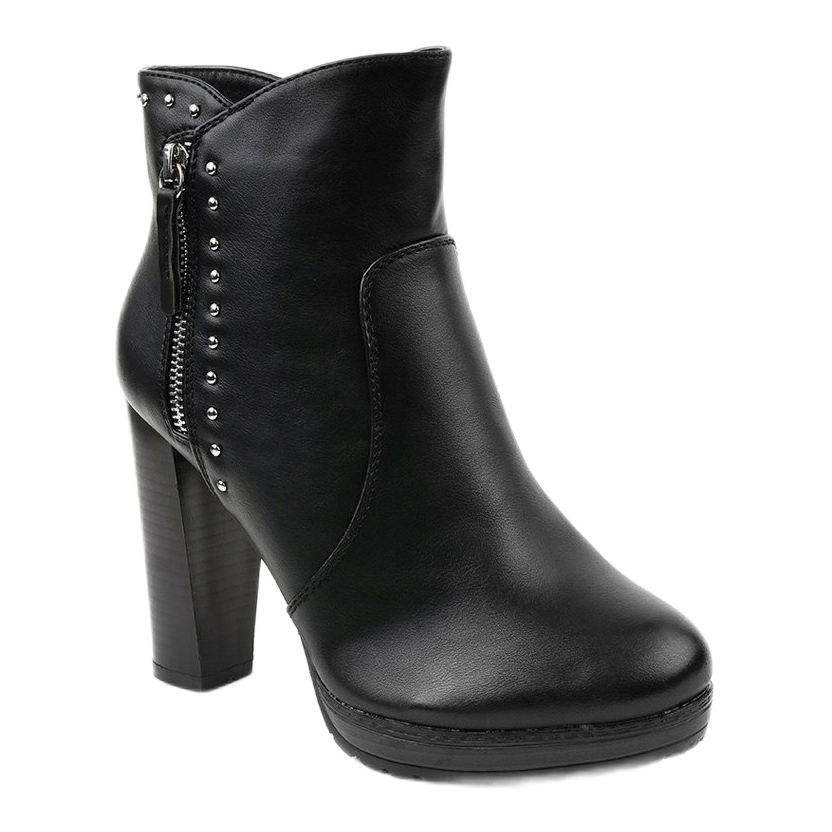 Black insulated block heel boots 88057 are a stylish choice for every woman who wants to combine elegance with comfort. Ankle boots with a high, 10 cm block heel add not only height but also self-confidence.