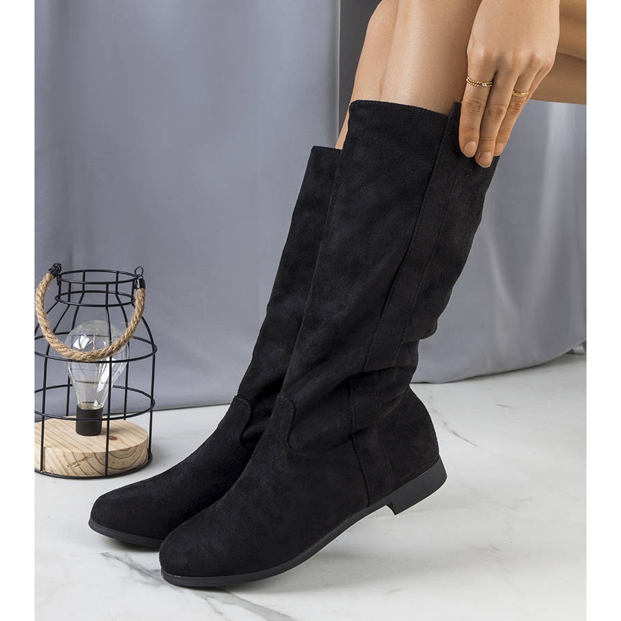 PA1 Thelma - black, insulated boots that combine classics with comfort. The high upper reaching about half of the calf subtly lengthens the leg, thanks to which the boots fit perfectly with both the mini -schools and classic jeans. Made of suede ecological leather, padded with soft material imitating fur - perfect for cooler days.