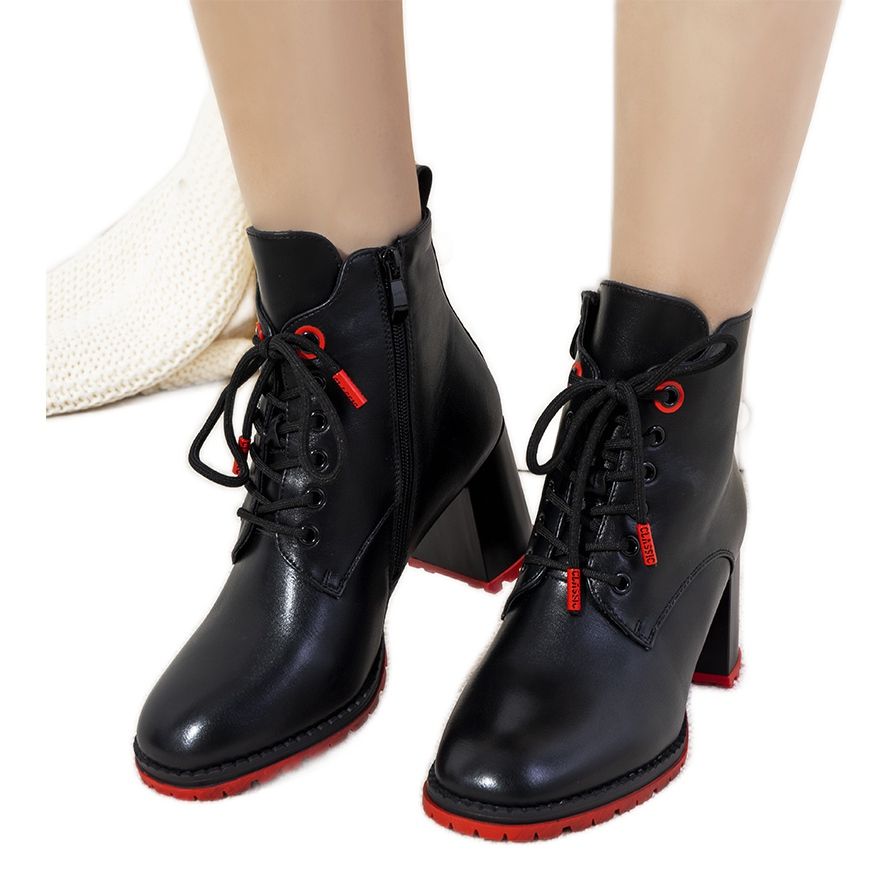 Discover elegance and comfort in black insulated ankle boots with Skow lacing, which are the perfect complement to autumn and winter stylings. The Skow model impresses with its classic form and the care with which every detail was made. Expressive red accents add extraordinary character, making them an eye-catcher wherever you go.