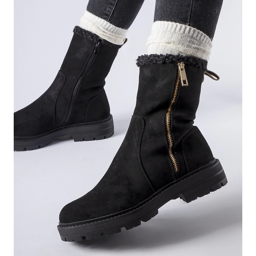 Classic, universal Sunnyslope boots in Black is an ideal proposition for the autumn -winter season. The side lock makes it easier to put on and take off, and a flat heel (3.5 cm) and a insulated fur insert guarantee comfort throughout the day. The combination of suede ecological leather with a durable rubber sole makes the shoes work great during daily walks and in urban conditions.