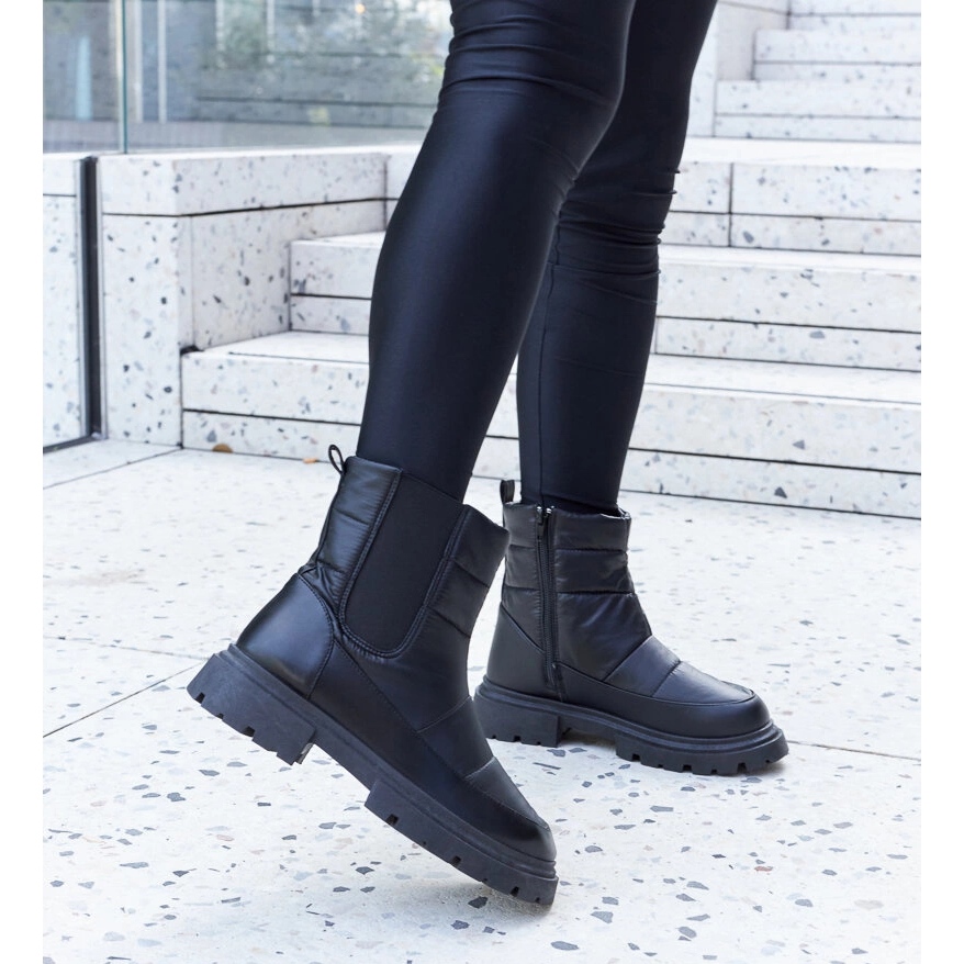 Great for urban stylizations and for walks on snowy pavements. The universal black color makes the shoes easily match both casual and more elegant outfits.