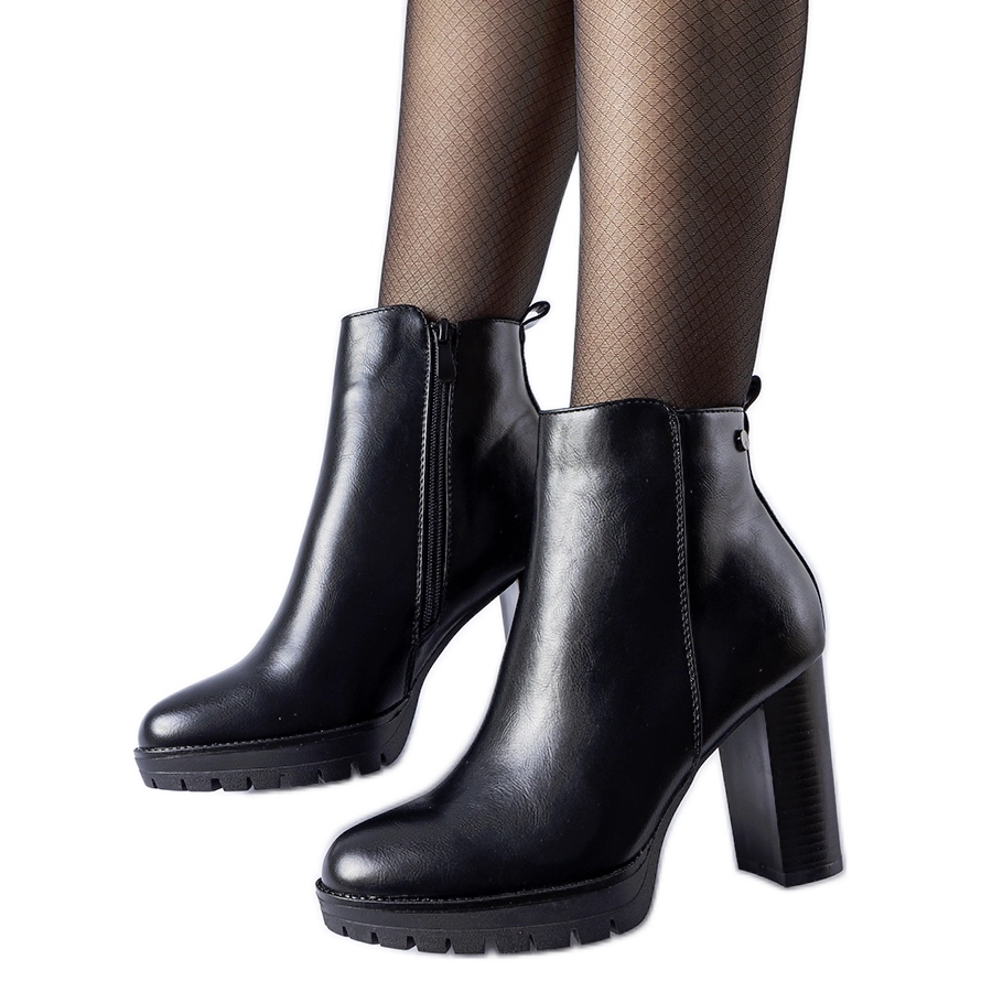 Classic and at the same time modern - black mulin boots (model UK157p) is a proposal for women who value style and comfort. The almond nose gives them slenderness, and the high post (9 cm) subtly extends the figure, maintaining stability while walking. Thanks to warm warming, they will be perfect in the autumn and winter season.