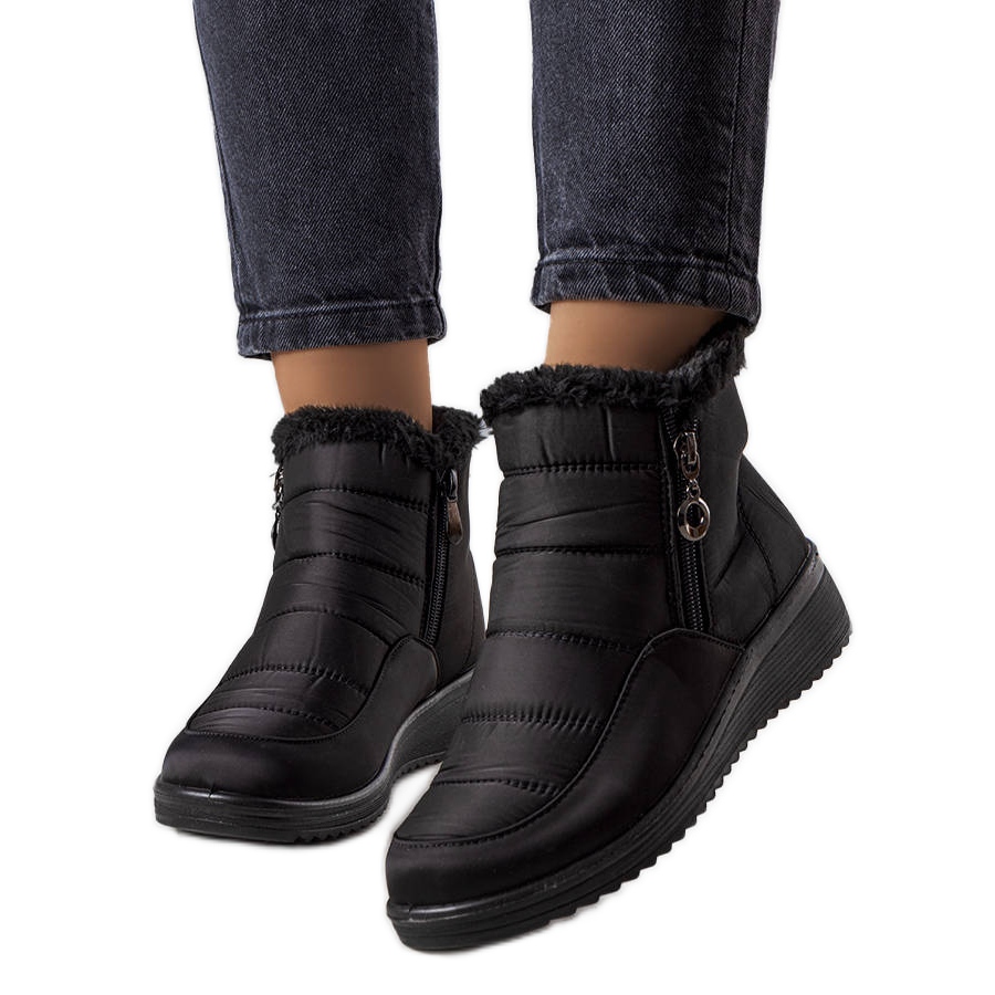 Black snow boots are the perfect shoes for every cold. Made of high -quality, smooth fabric, with a soft, fluffy fur in the interior, guarantee comfort and heat on cold days. Neutral, black colors make them fit many winter stylizations.