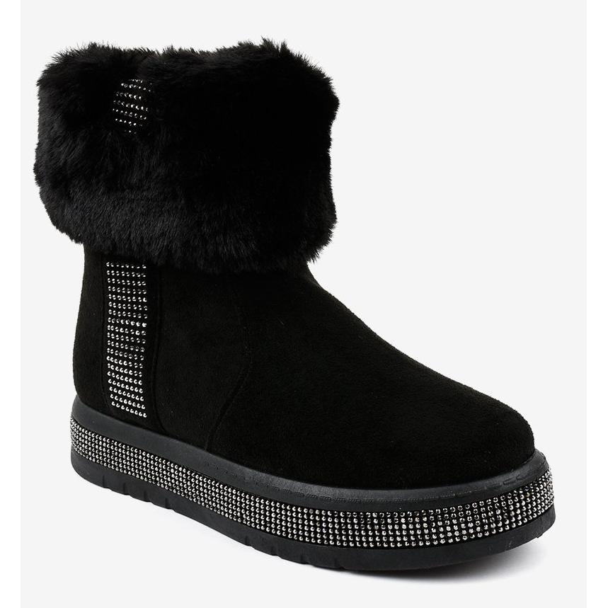 The uppers of the shoes reach above the ankle, which provides additional protection against the cold. The insulated interior guarantees warmth, and the cozy fur trim adds charm. The key element is the decorative zircons and jets, which introduce a touch of shine and originality to any styling.