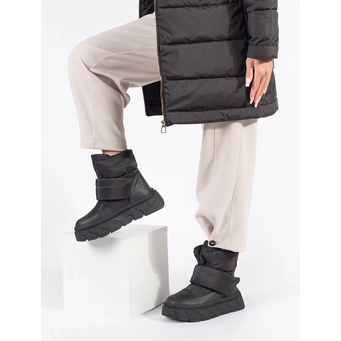 Thanks to its thick platform 6 cm high, these snow boots not only look great on the leg, but also ensure stability and proper cushioning during each step. Built -in, soft heel and full nose guarantee safety and comfort, and the inserted clasp makes it easier to put on and take off shoes.