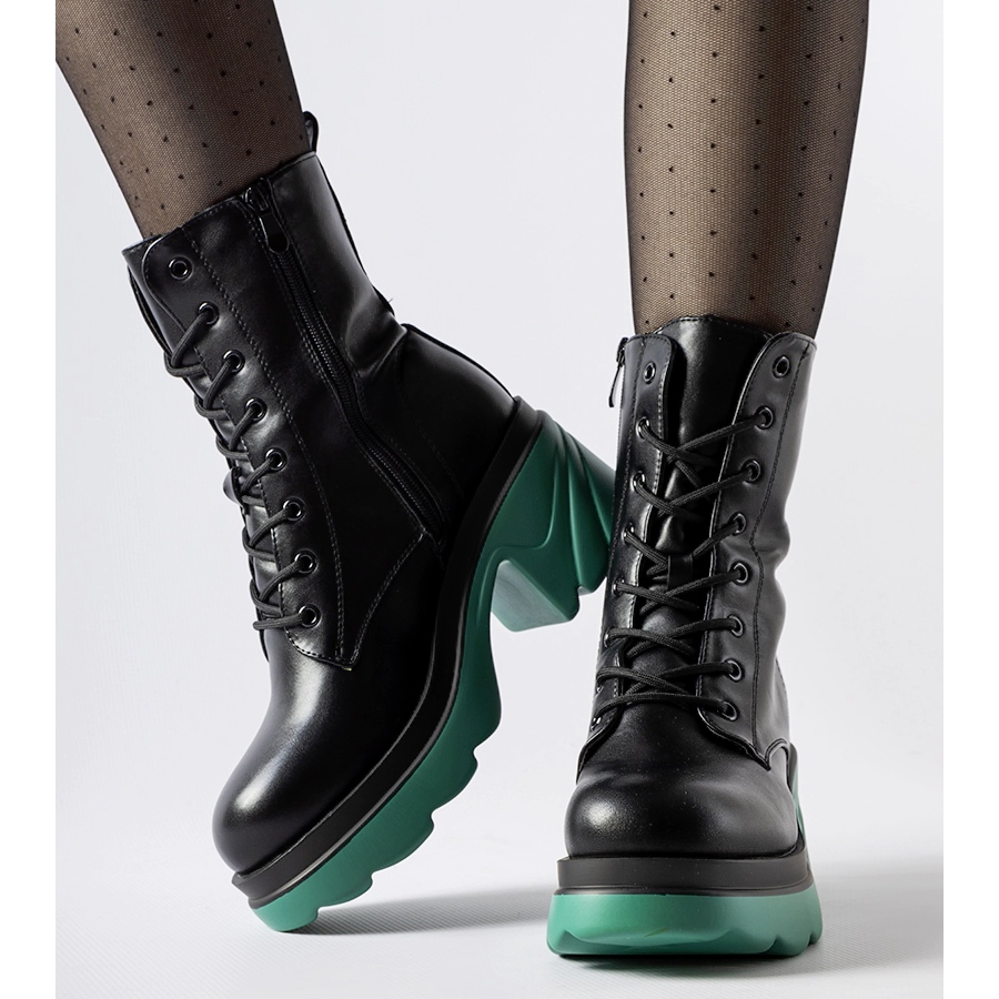 These workers are ankle-high, which provides extra support and comfort. They go great with a variety of outfits, from loose pants to flowing dresses. The black color makes them incredibly versatile, and the green sole adds an original character.