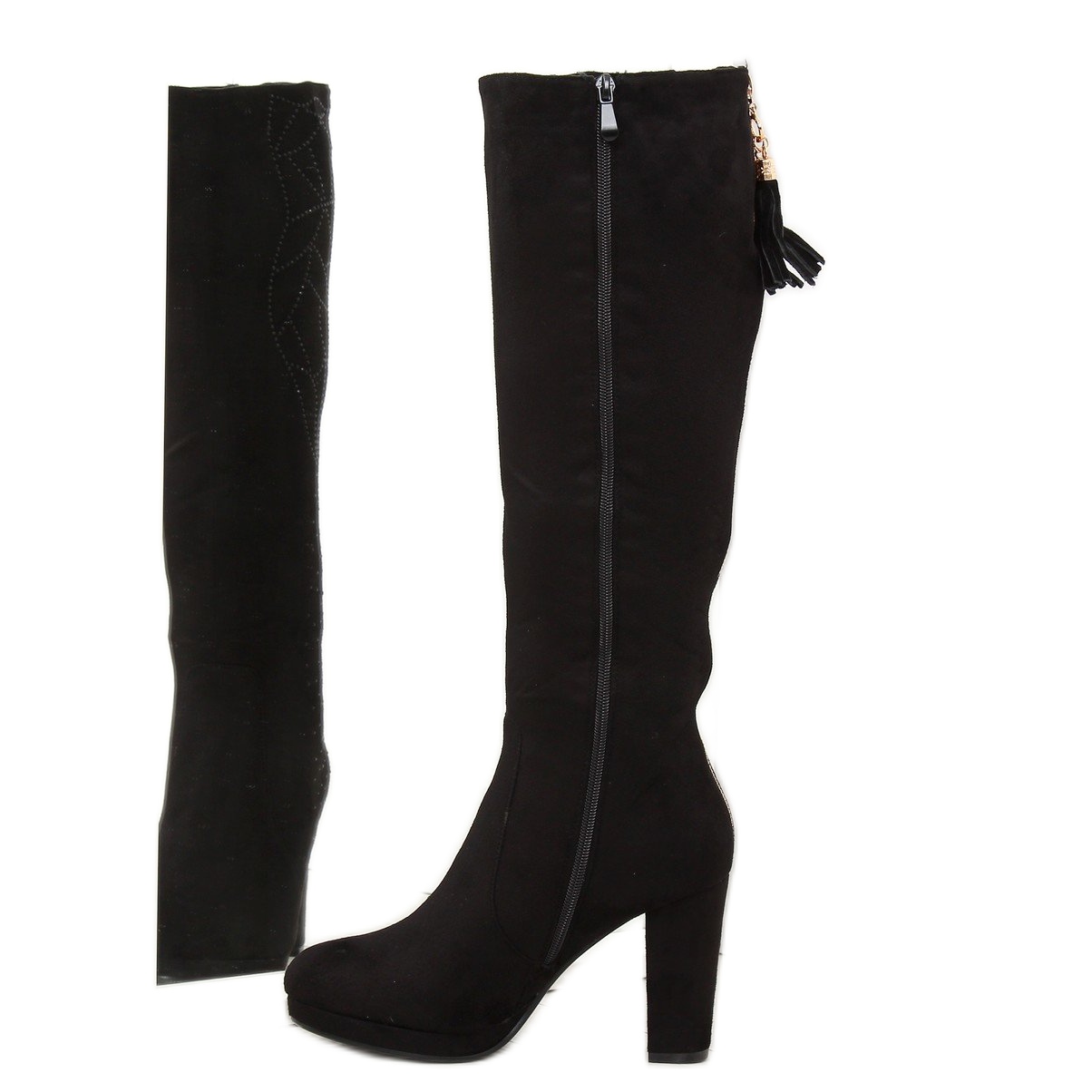 Discover the extraordinary black J22 Black platform boots that will surely attract everyone's attention! These unique women's high heel boots are perfect for women who want to add a bit of shine and elegance to their style. Made of ecological suede, they combine comfort and a fashionable look.