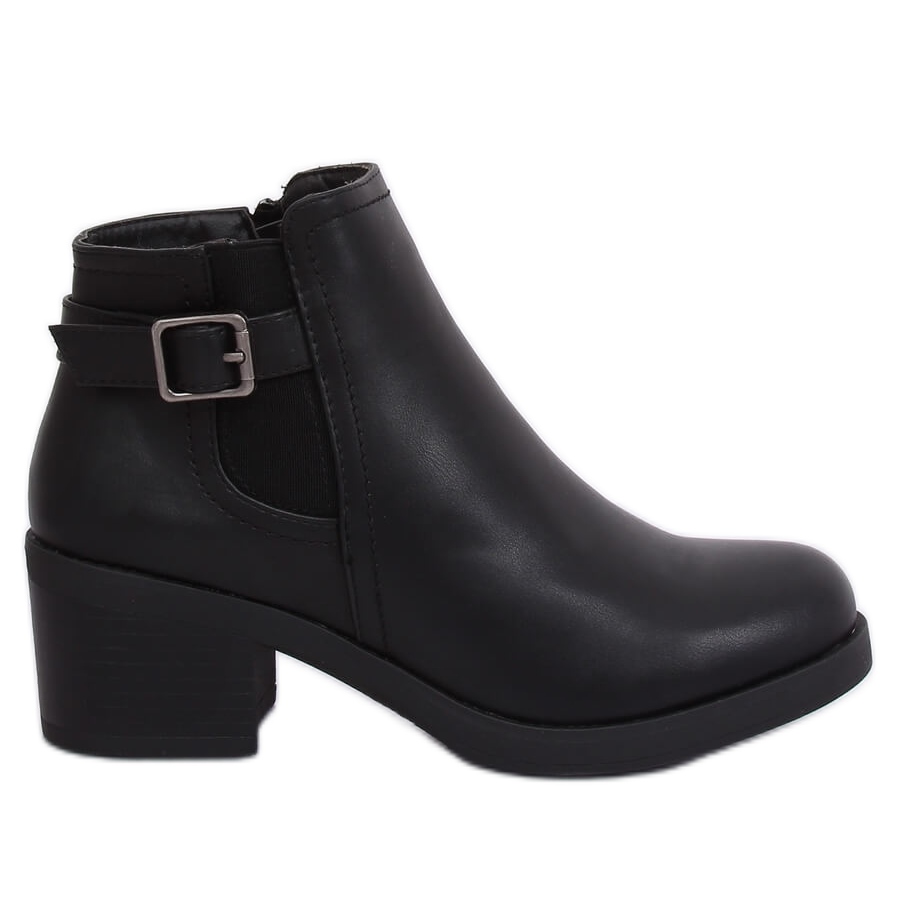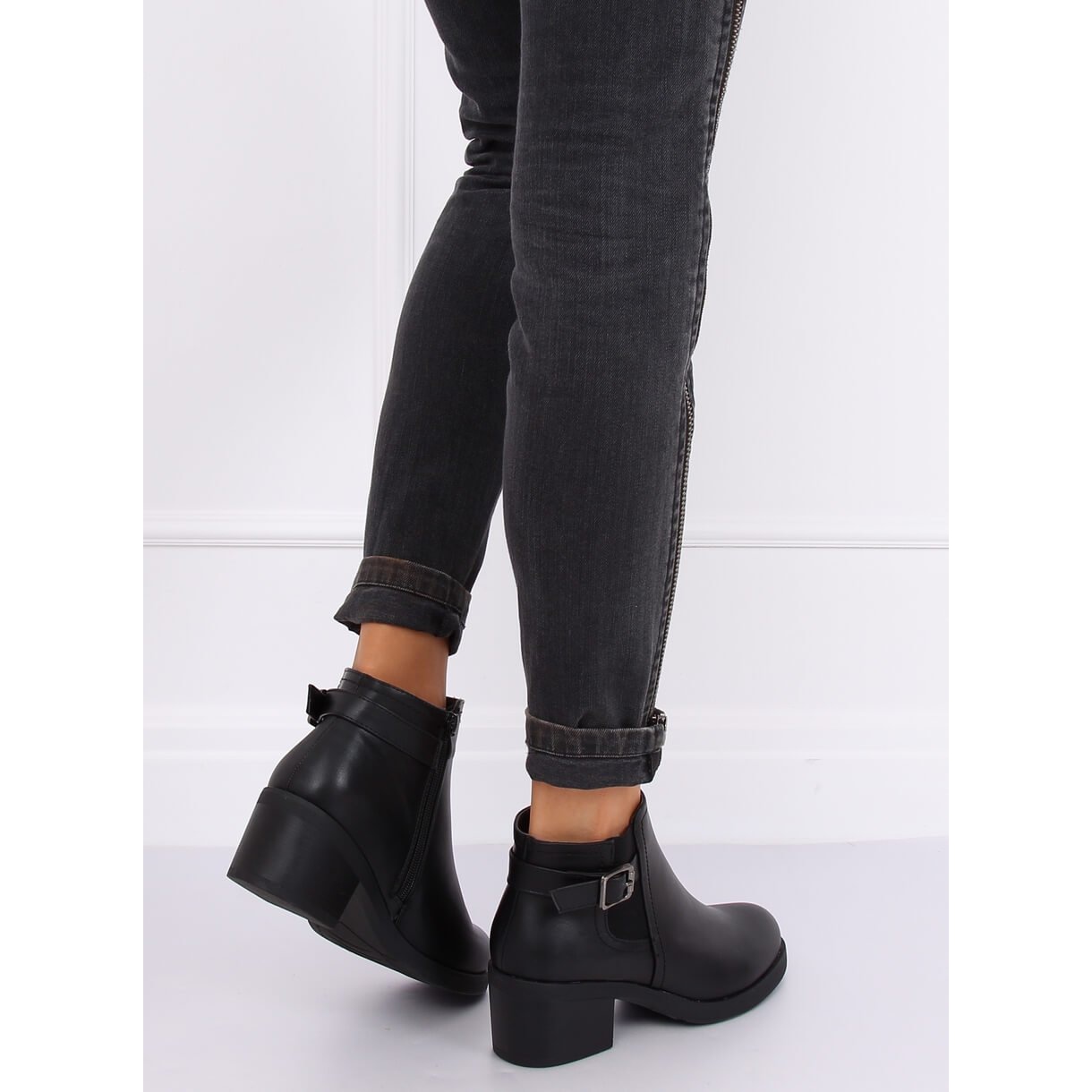 Black ankle boots with heels B0-232 Black are a great choice for women looking for comfortable and fashionable shoes for everyday use. Made of high-quality ecological leather, they combine elegance with comfort. The 6 cm high block-style heel provides stability and comfort during use, perfectly matching various styles.