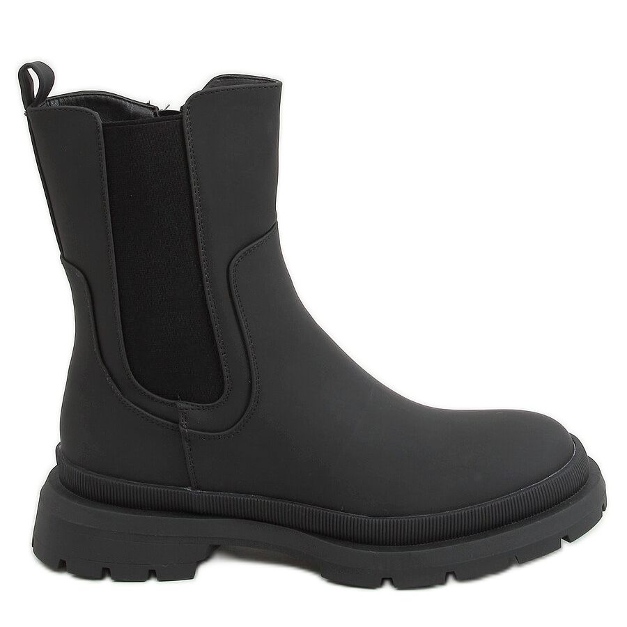 Black Chelsea boots QT26P Black are the perfect choice for women who value both style and comfort. These elegant ankle boots with a flat sole of 3.5 cm height perfectly fit into the latest fashion trends, and their timeless design means that they will match many everyday styles.