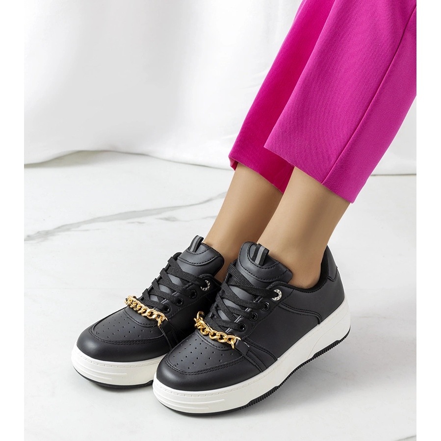 Modern Kellher's sneakers is a must-have this season. Made of high quality ecological leather, they combine a sporty character with a fashionable, feminine accent in the form of a decorative chain. Thanks to the higher sole (3.5 cm platform), the shoes provide comfort throughout the day and add a few centimeters without giving up comfort.
