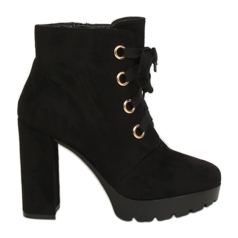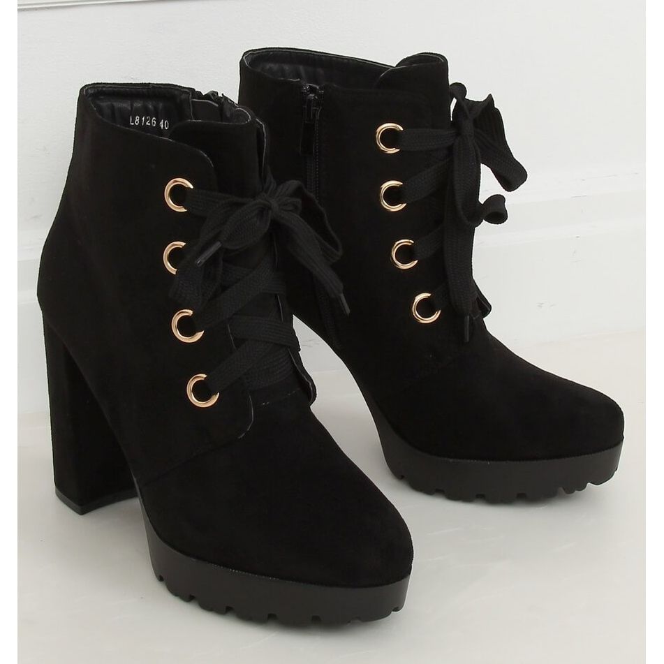 Black platform ankle boots L8126 Black are a great choice for every woman who wants to combine comfort with a fashionable look. Made of high-quality ecological suede, in an elegant black color, they will add chic and class to any styling. A stable 11 cm heel and a 2 cm platform provide comfort while lengthening and slimming the silhouette.