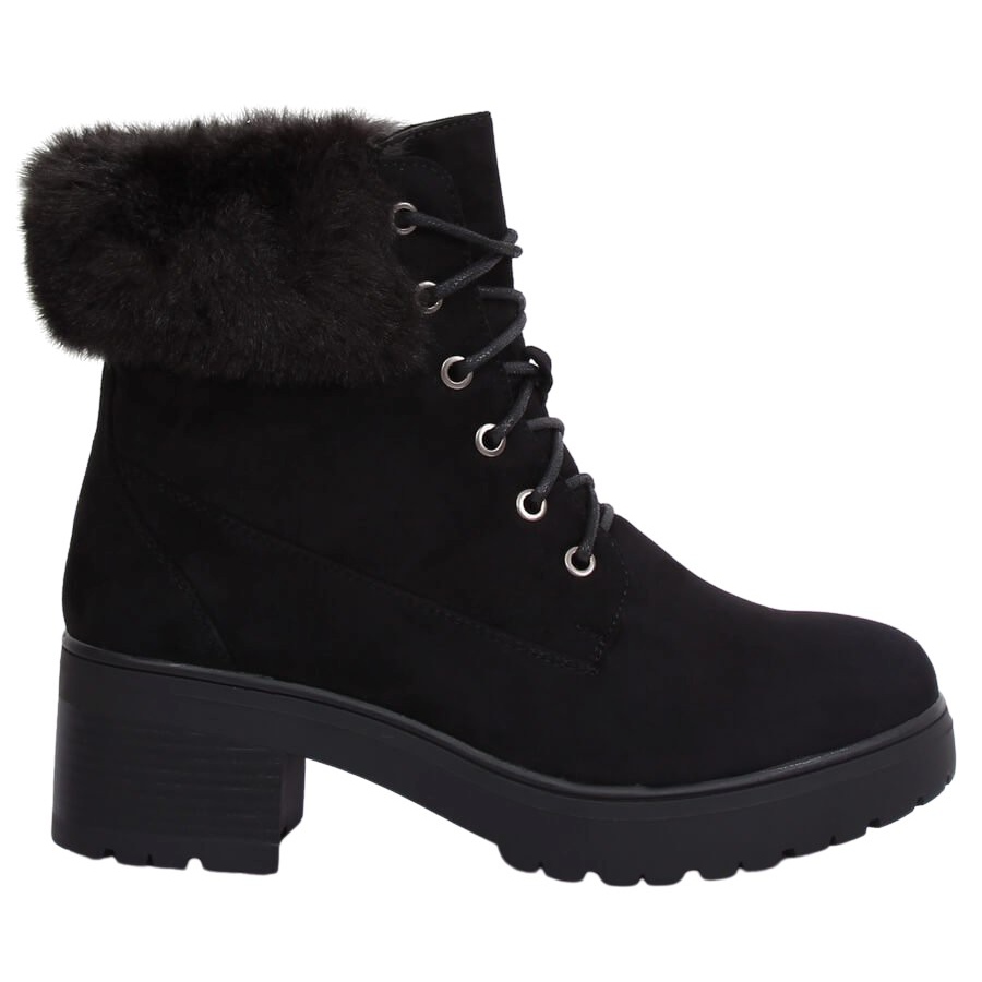 Discover the perfect combination of comfort and style with the B0-217 women's lace-up ankle boots in black. These elegant shoes feature a unique upper decorated with soft fur, which adds a touch of luxury and provides a pleasant wrapping when worn.