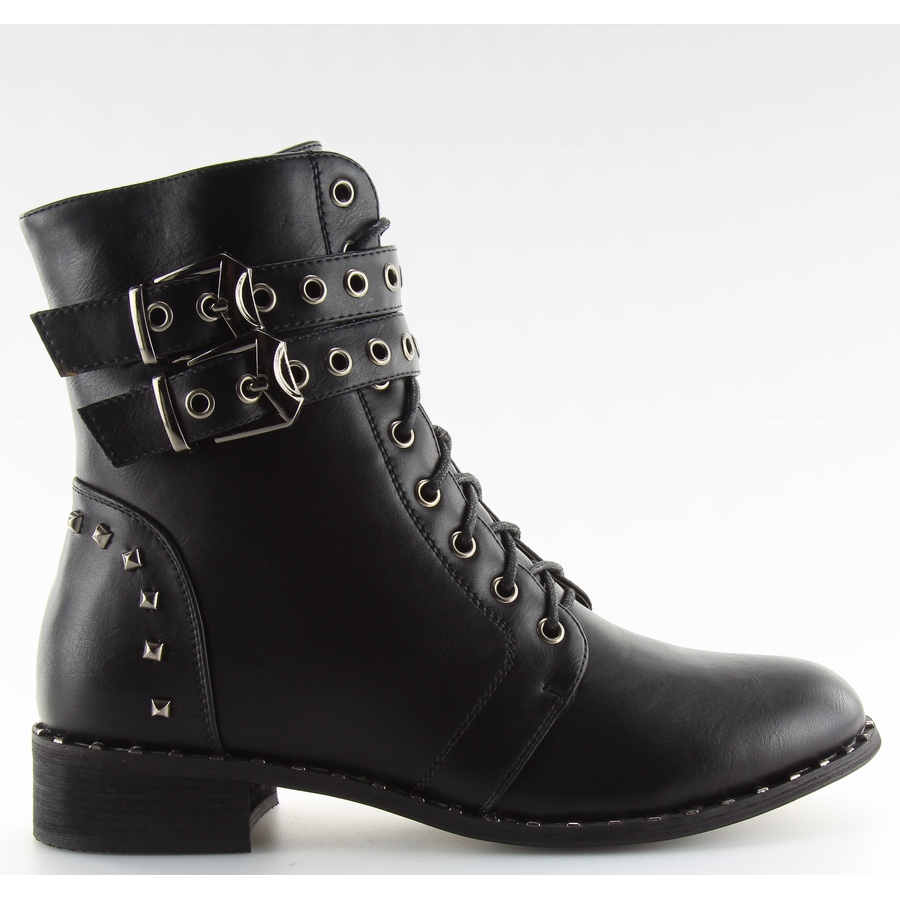 Discover your individuality with the unique PE155P lace-up ankle boots in black. These stylish women's combat boots with a flat heel combine comfort and fashionable design, making them the perfect choice for various occasions.