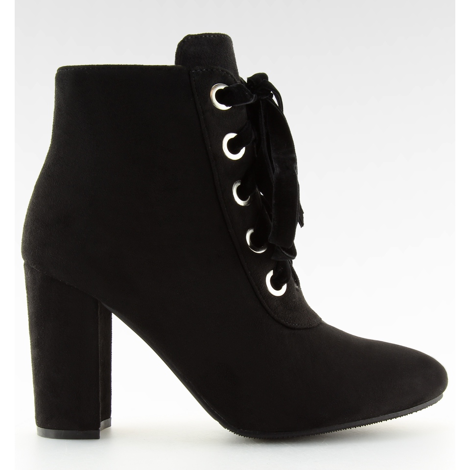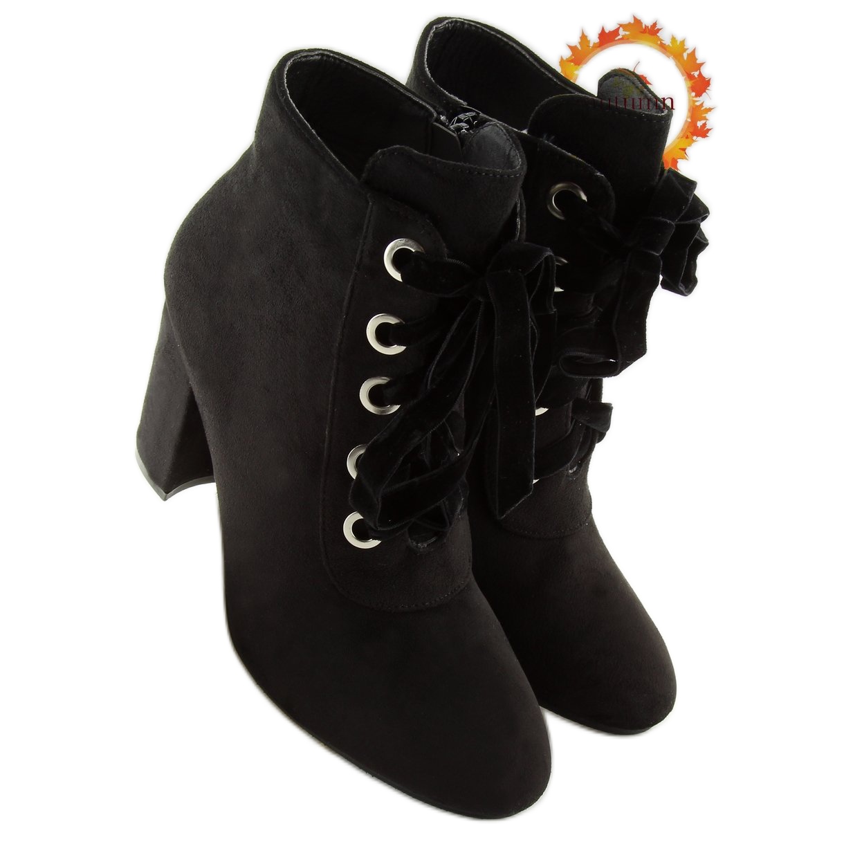 Black ZH781 lace-up heeled ankle boots are the perfect choice for women who value style and comfort every day. These elegant ankle boots with a stable 9 cm heel combine modern design with functionality. Instead of traditional laces, a velvet ribbon was used, which is a fashionable accent, in line with current trends.