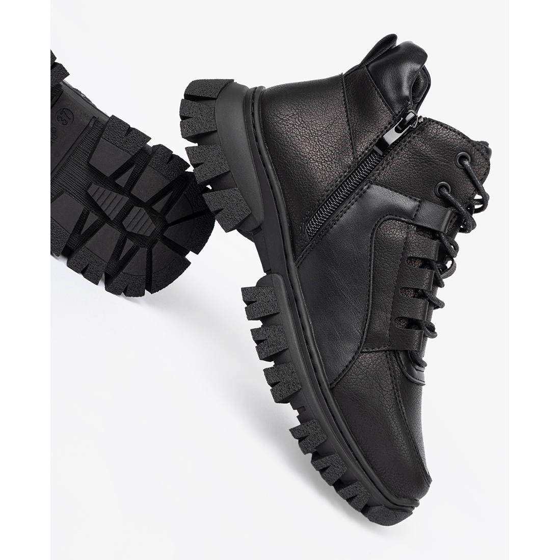 Details: Black lace -up hiking boots with a thick sole Sergio Leone