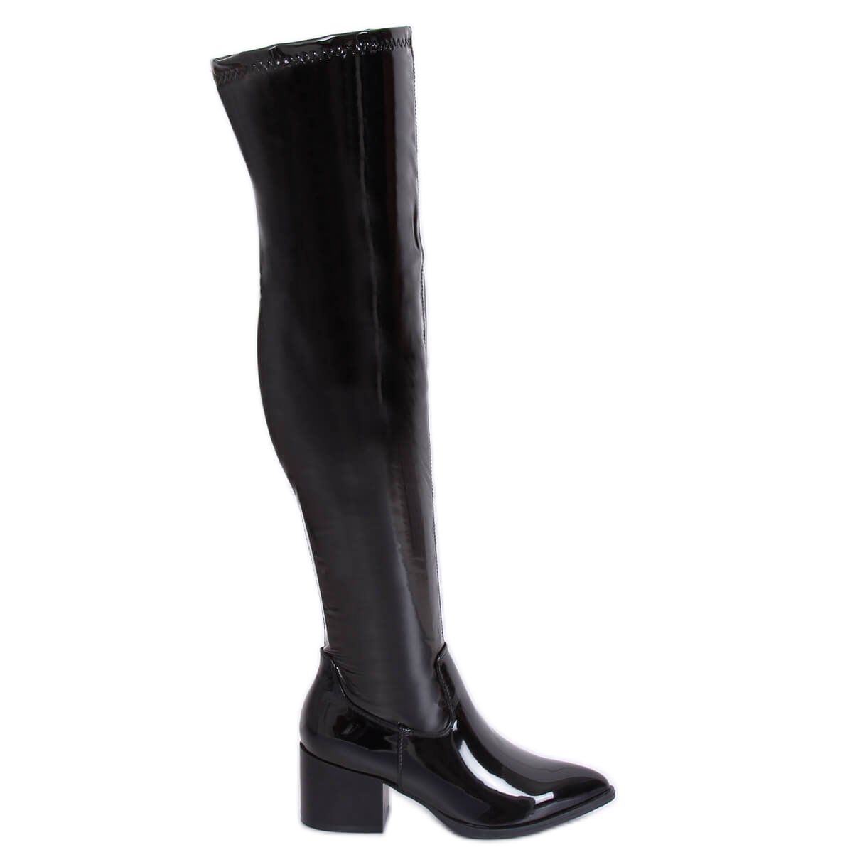 Introducing the RB35P Black patent leather over the knee boots – the perfect choice for women who want to stand out from the crowd. These incredibly stylish boots with a wide 7 cm heel add elegance and chic to any style. The patent finish attracts attention, making them a key element of the wardrobe.