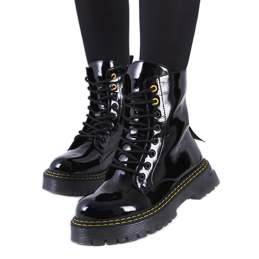 BM Black Patent Leather Ferreira Combat Boots - Elegance in Street Style