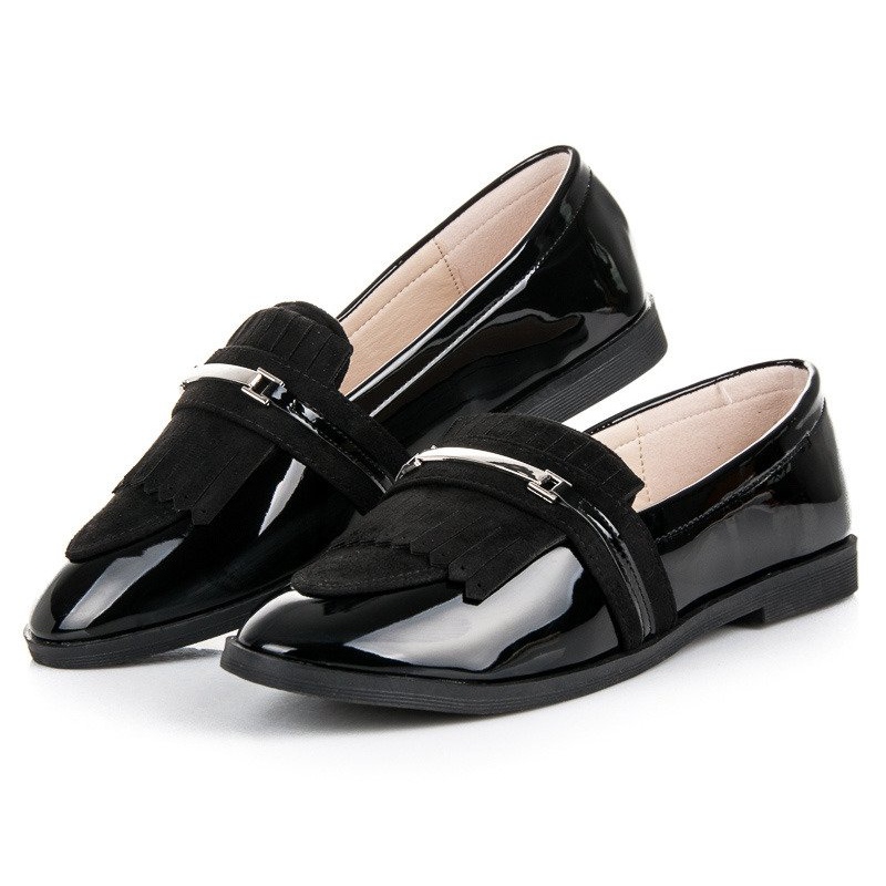 Discover elegance and comfort with black patent loafers from Ideal Shoes. This model, created with modern women in mind, combines style and functionality, perfectly fitting into urban trends.
