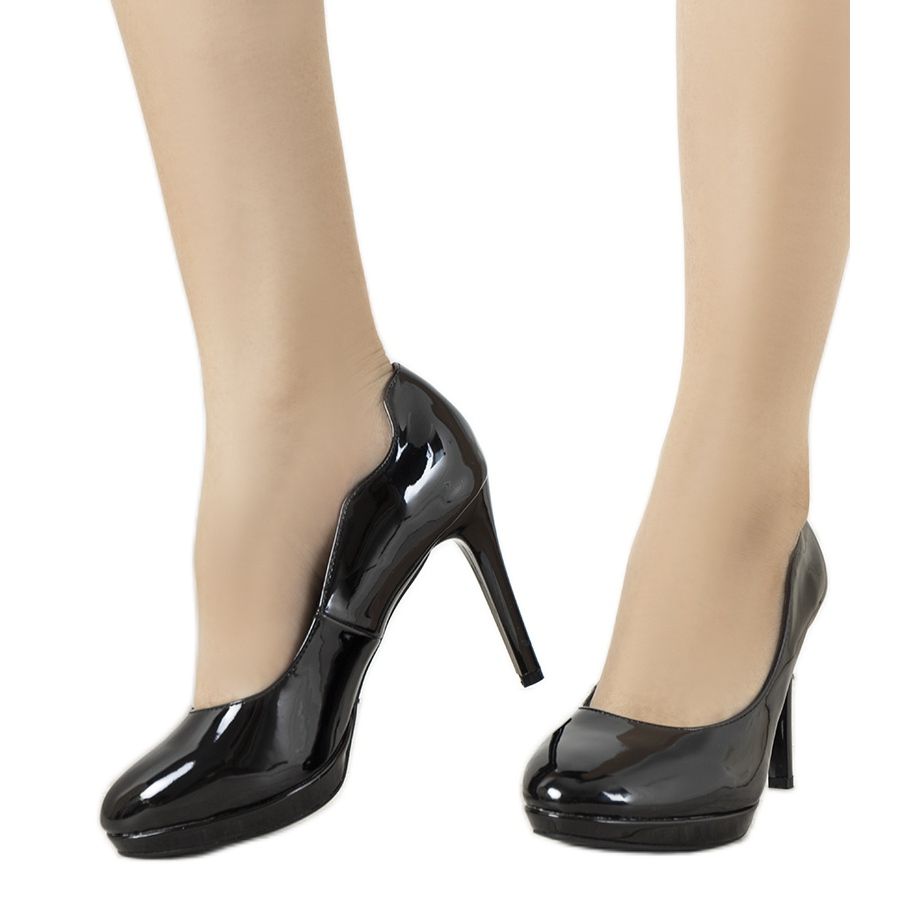 Discover elegance and style with black patent leather pumps on a stiletto heel by Joleen. These unique shoes, made of high-quality patent leather, are the perfect complement to any evening styling. The low platform and stable 9.5 cm heel guarantee not only an attractive appearance, but also comfort of wearing during long hours on your feet, making them a great choice for special occasions and parties.