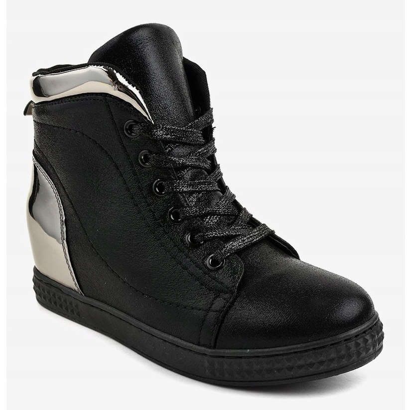 Inna marka Black lacquered sneakers on a wedge R469-2