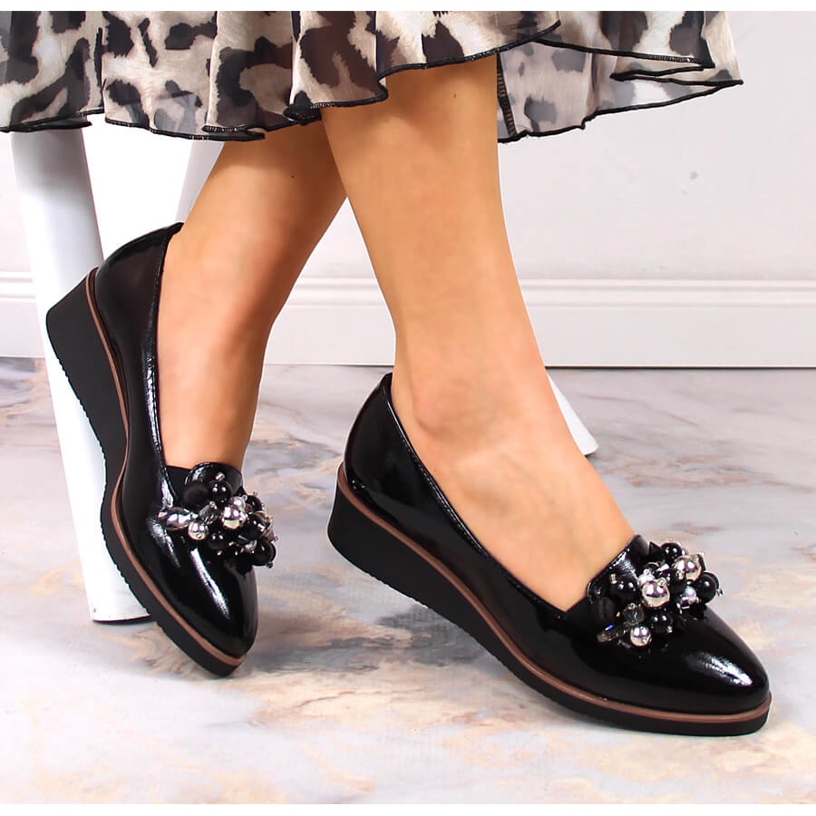 Details: Black lacquered wedge shoes with beads Potocki SZ12031