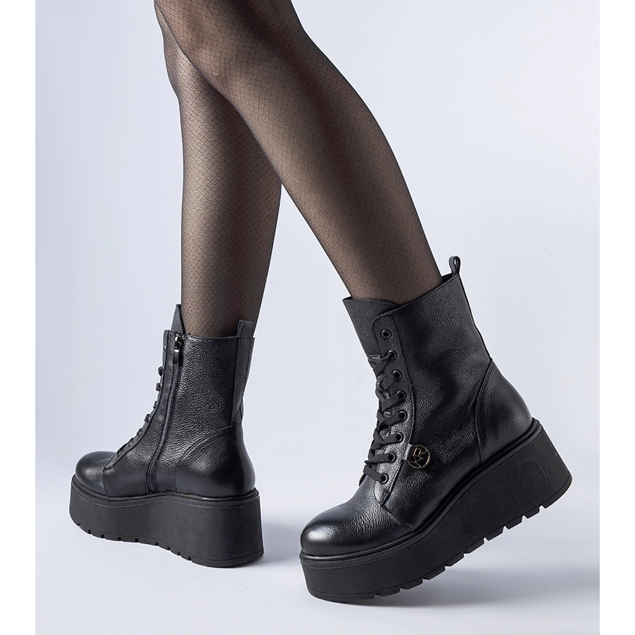 Black leather platform boots by Karino are synonymous with elegance combined with modern design. This particular pair of shoes was designed for women who value both comfort and sophisticated style.