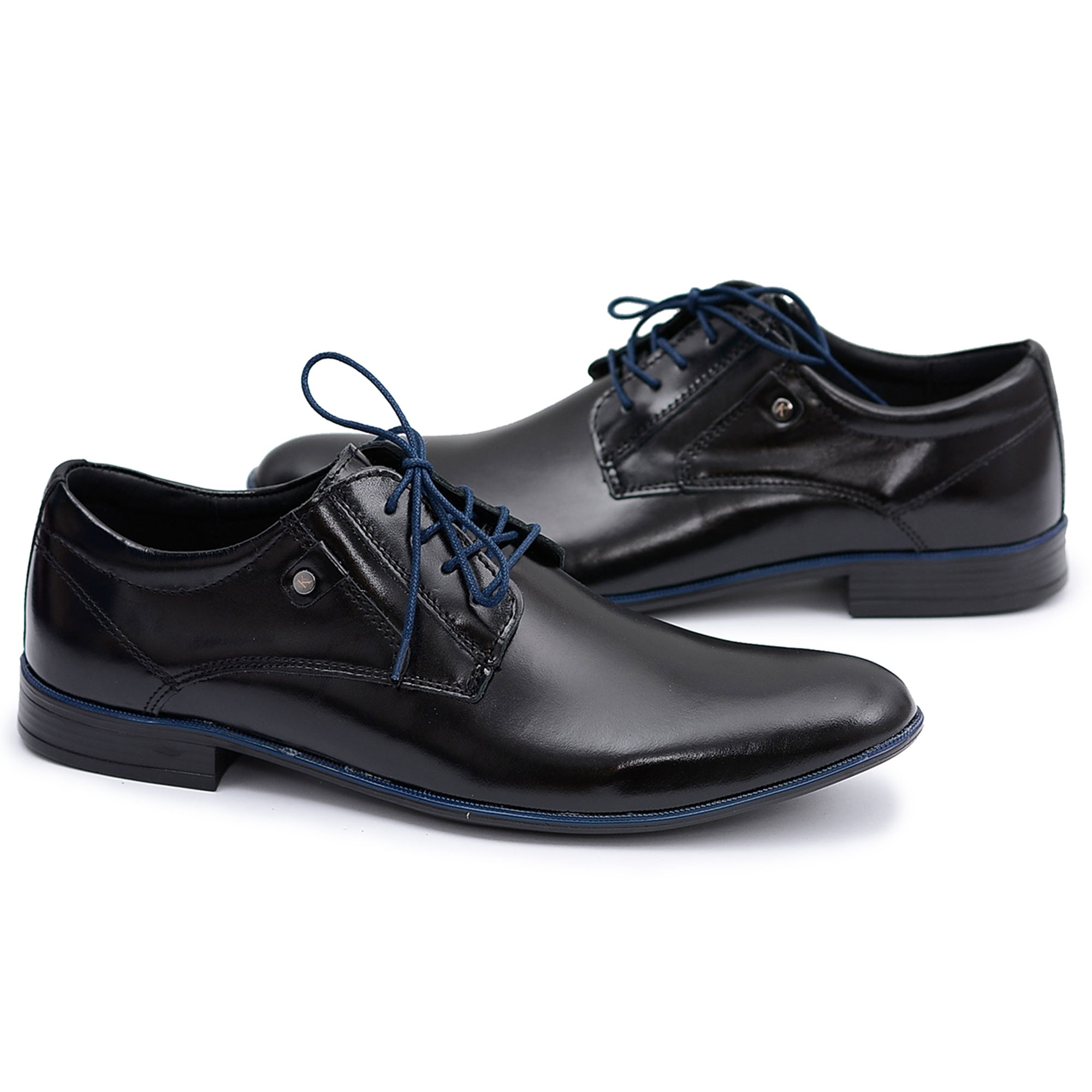 Discover elegance and comfort with black leather shoes Massimiliano from the manufacturer KOMODO! These men's formal shoes, made entirely of high-quality full-grain leather, combine modern design with classic style. Their round toe and 2 cm flat heel ensure comfort of wear, making them an ideal choice for important occasions and celebrations.