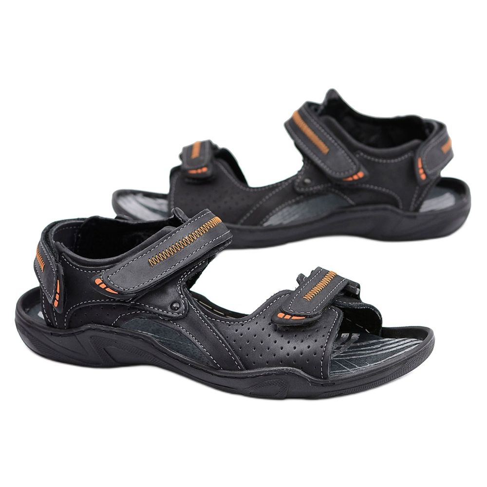 Details: Gino Tuzzi Black Leather Polish Sandals Velcro Nicola