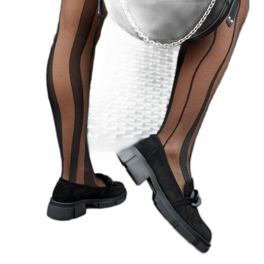 Black loafers with eco-suede chain are a great choice for modern women who want to combine comfort with elegance. Made of eco-suede, these stylish shoes look extremely impressive, and their classic black color makes them suitable for many summer styles. Decorated with a subtle chain, the GD-XR-119C model attracts attention and adds character to both everyday and more formal outfits.