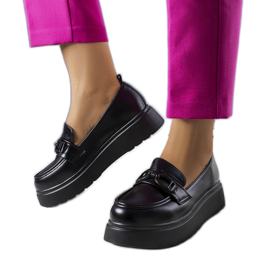Discover elegance and comfort with black Gagnon loafers, which, decorated with a wedge, are the perfect complement to any casual style. These women's loafers, made of high-quality ecological leather, provide not only an aesthetic appearance, but also excellent wearing comfort.