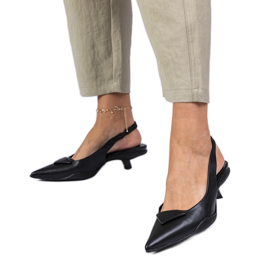 A classic and modern LL-262P model from the Keeshoes collection. Sandals made of ecological leather (outer and insert) in a universal black color (black). They are characterized by a closed, slightly pointed nose and an outdoor heel - a perfect combination of elegance with summer breathable.