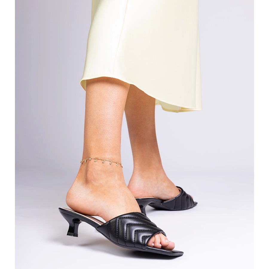 Elegant Launay flip flops combine a fashionable, square nose with comfort and daily functionality. A sliding model with a wide strip decorated with spectacular quilting will work for both casual summer stylizations and more elegant sets.