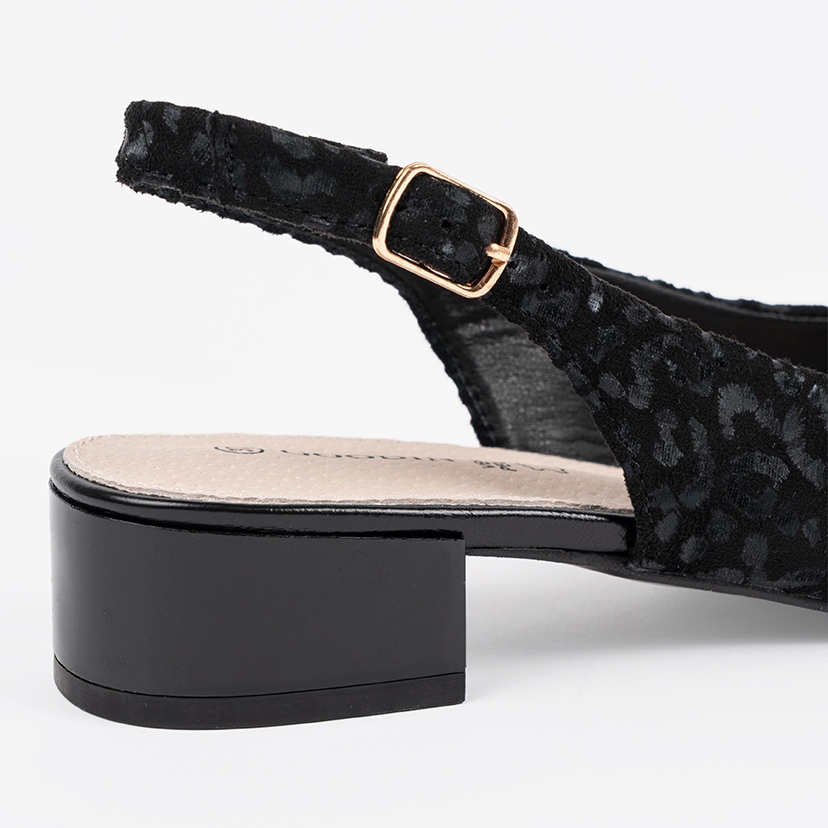 We present black sandals with a low -heel leopard with Goodin - an ideal choice for every woman who not only values comfort, but also wants to look stylish. These elegant sandals combine modern design and high quality, which makes them Must-Have on the coming spring-summer days.