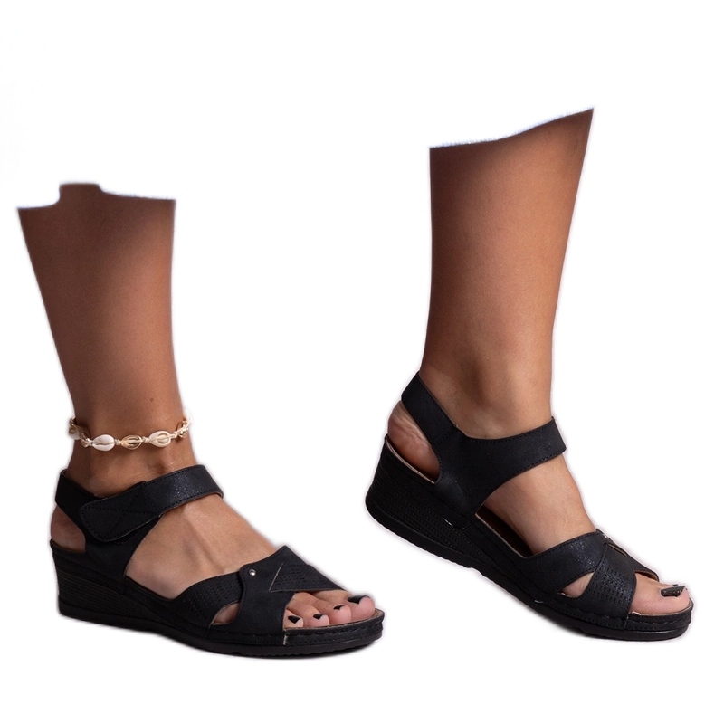 Thanks to its classic, black colors and minimalist cut, these sandals blend in perfectly with various summer stylizations. The low wedge with a height of 6 cm makes them extremely comfortable, and at the same time add a subtle height, thanks to which the legs seem longer and slimmer.