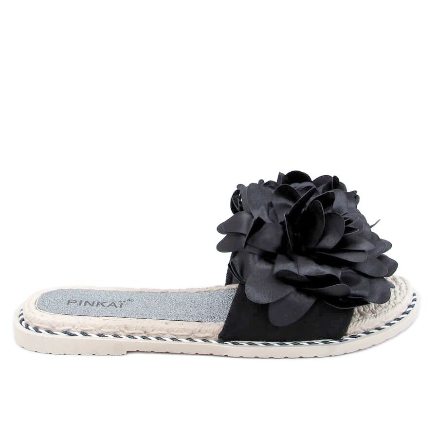 Inna marka Black LS005 Black women's slippers with flowers