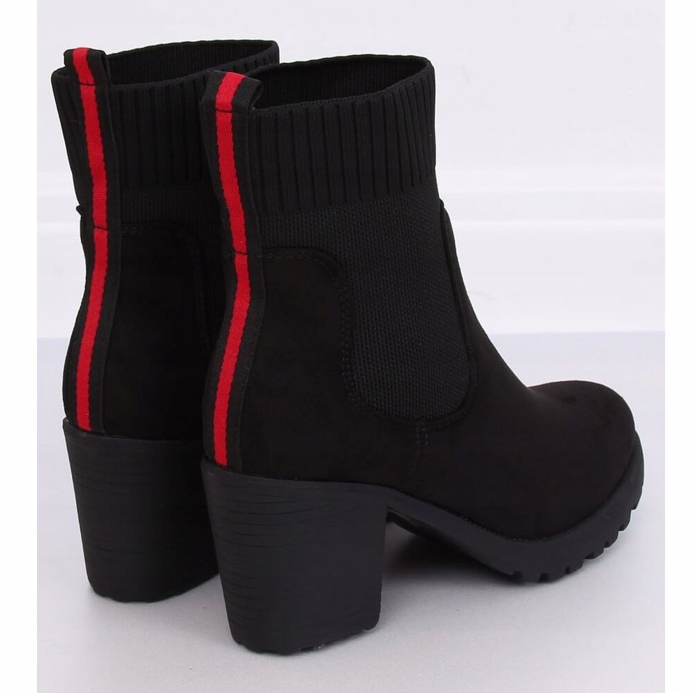 The upper made of elastic material resembling a sweater provides a perfect fit to every foot, making them a comfortable choice for everyday use. An additional advantage is the decorative stripe on the back, which emphasizes their unique character. The burgundy version is devoid of this element, which makes the black ankle boots even more unique.