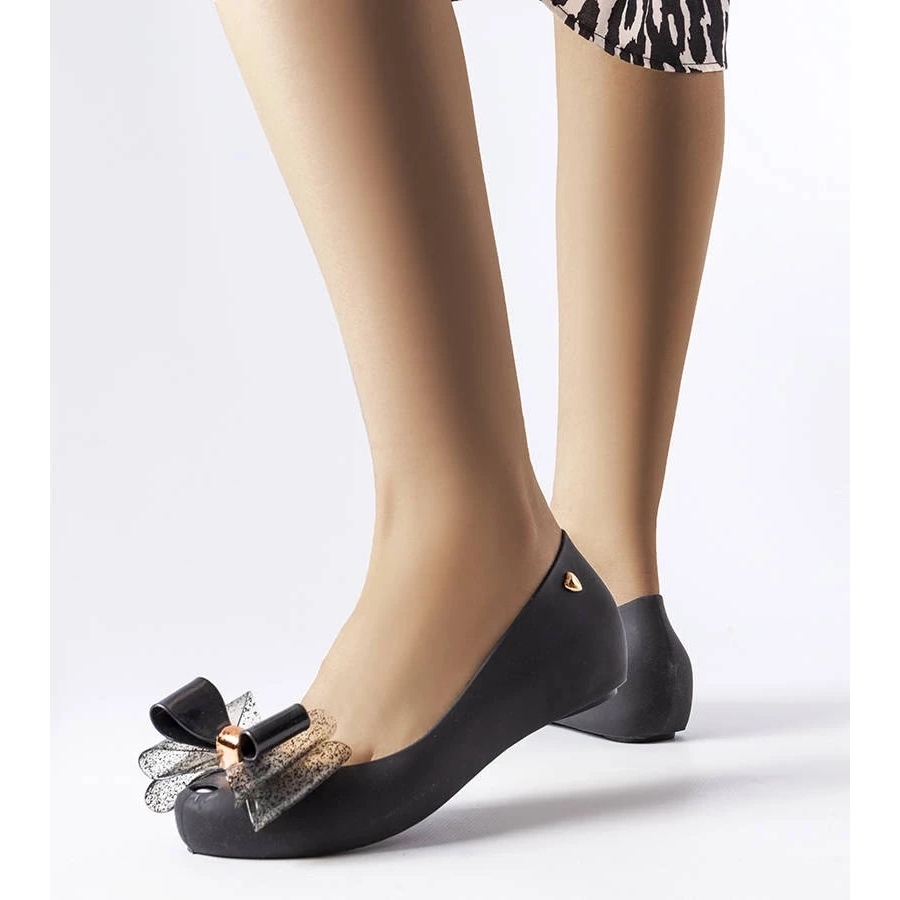 The upper, decorated with a subtle thread at the ankle, gives them a unique character. On a round nose there is a spectacular bow that attracts looks and adds a romantic charm. Made of high quality rubber, these ballerinas are not only stylish, but also practical and easy to care.