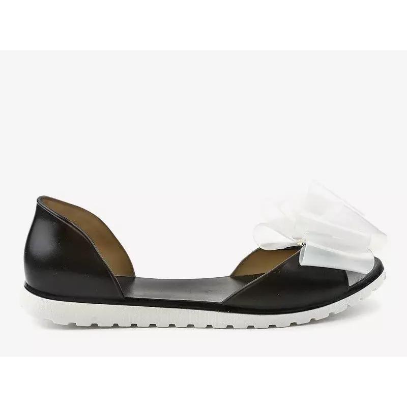 Discover elegance and comfort in black sandals meliska S5-3, which will be the perfect choice for any occasion. These stylish, women's shoes are distinguished by their modern design and an original accent in the form of a large, white bow with a gold pin, which attracts attention and adds charm.