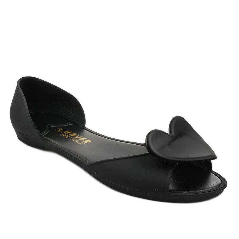 Black meliski Ballerinas Rubber with Heart KM121-8 are unique and stylish footwear that perfectly fits into spring-summer trends. They are characterized by a simple, classic design that will certainly appeal to all lovers of elegant and comfortable footwear.