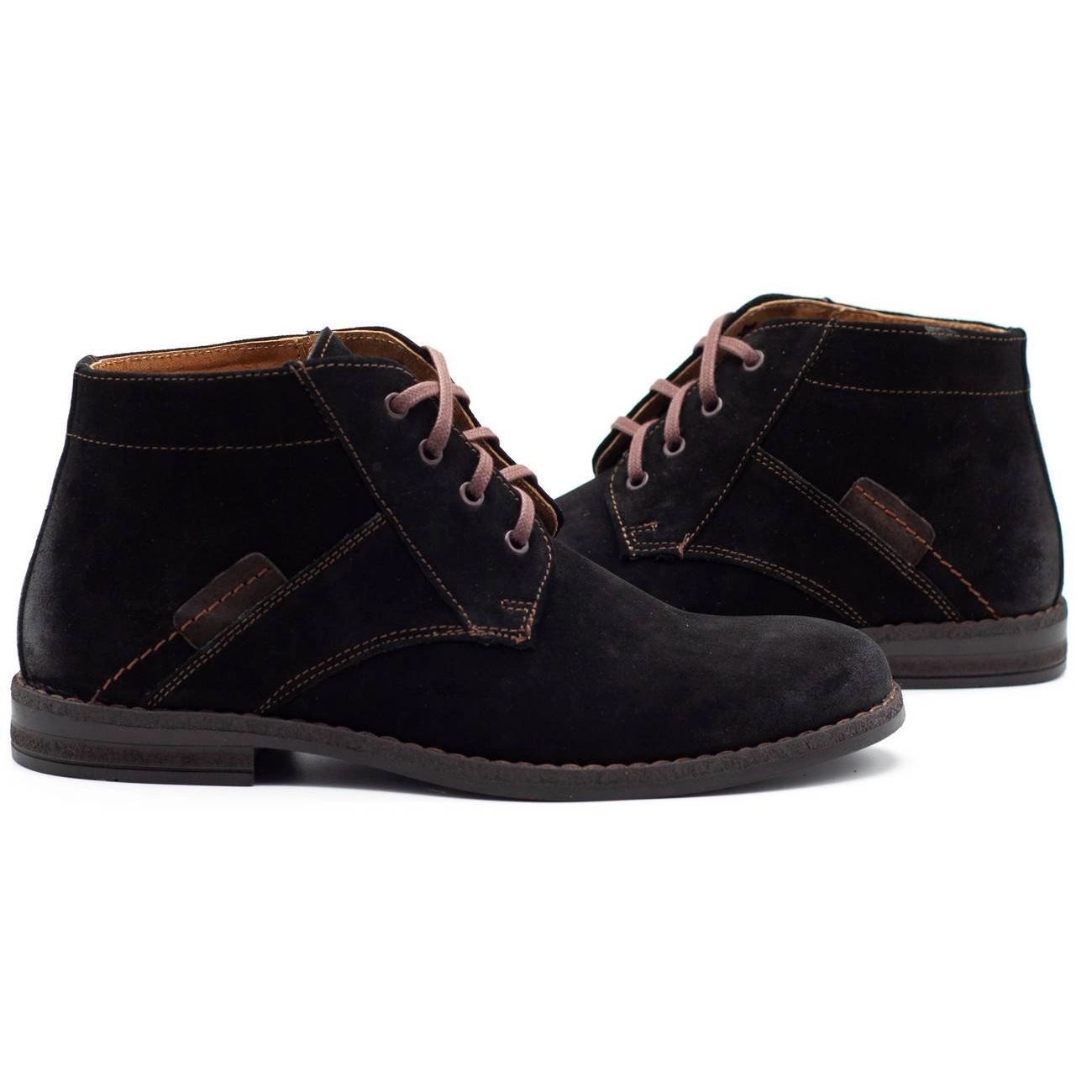 Olivier Men's Jodhpur boots 605 - elegance and comfort every day. The classic, black cut of suede ecological leather will work for both casual and more formal stylizations. Subtle stitching in the back of the upper made with a light brown thread add character, and the lace -up fastener on the pin ensures a better fit. A flat, durable sole made of high quality plastic with a small tread guarantees stability and comfort of use.