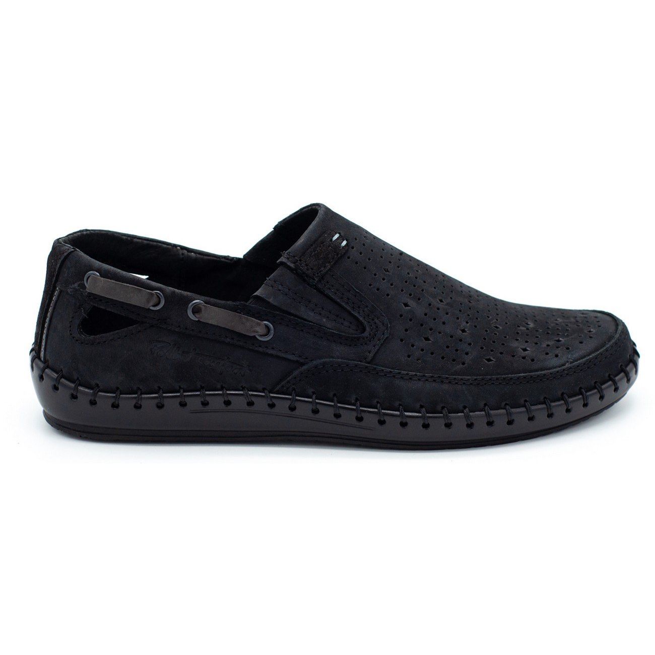 J68L men's openwork moccasins shoes, black, are a perfect choice for men who value comfort, quality and timeless design. Another undoubted advantage is the fact that they are delivered in the manufacturer's original packaging, which makes them a great gift solution.