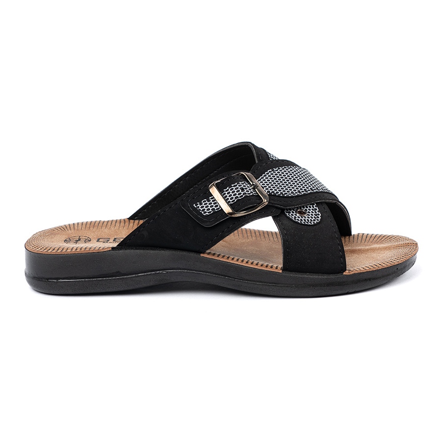 Details: Shelvt Black men's slippers with buckles