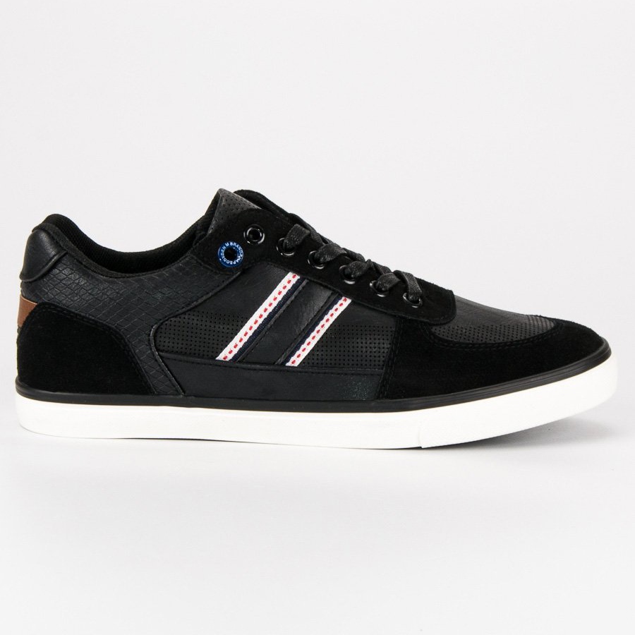 Universal, comfortable and timeless - these black men's sneakers are a must-have element of a men's wardrobe. Made of ecological leather with stylish inserts of ecological suede, they combine a sporty character with elegant simplicity. The dominant black color with subtle accents (brown element on the back and white stripes on the sides) makes the shoes easy to match to many styles.