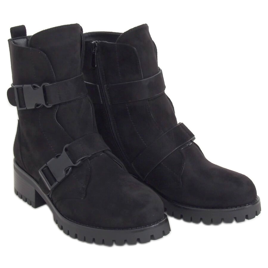Discover the latest hit in the world of fashion – suede women's ankle boots in a military style, which will perfectly fit into any everyday style. These black ankle boots are a real must-have in the wardrobe of every fashionable woman. They are characterized not only by an elegant and universal color, but also by a fashionable design on a wide 4 cm heel, which ensures comfort of wearing all day long.