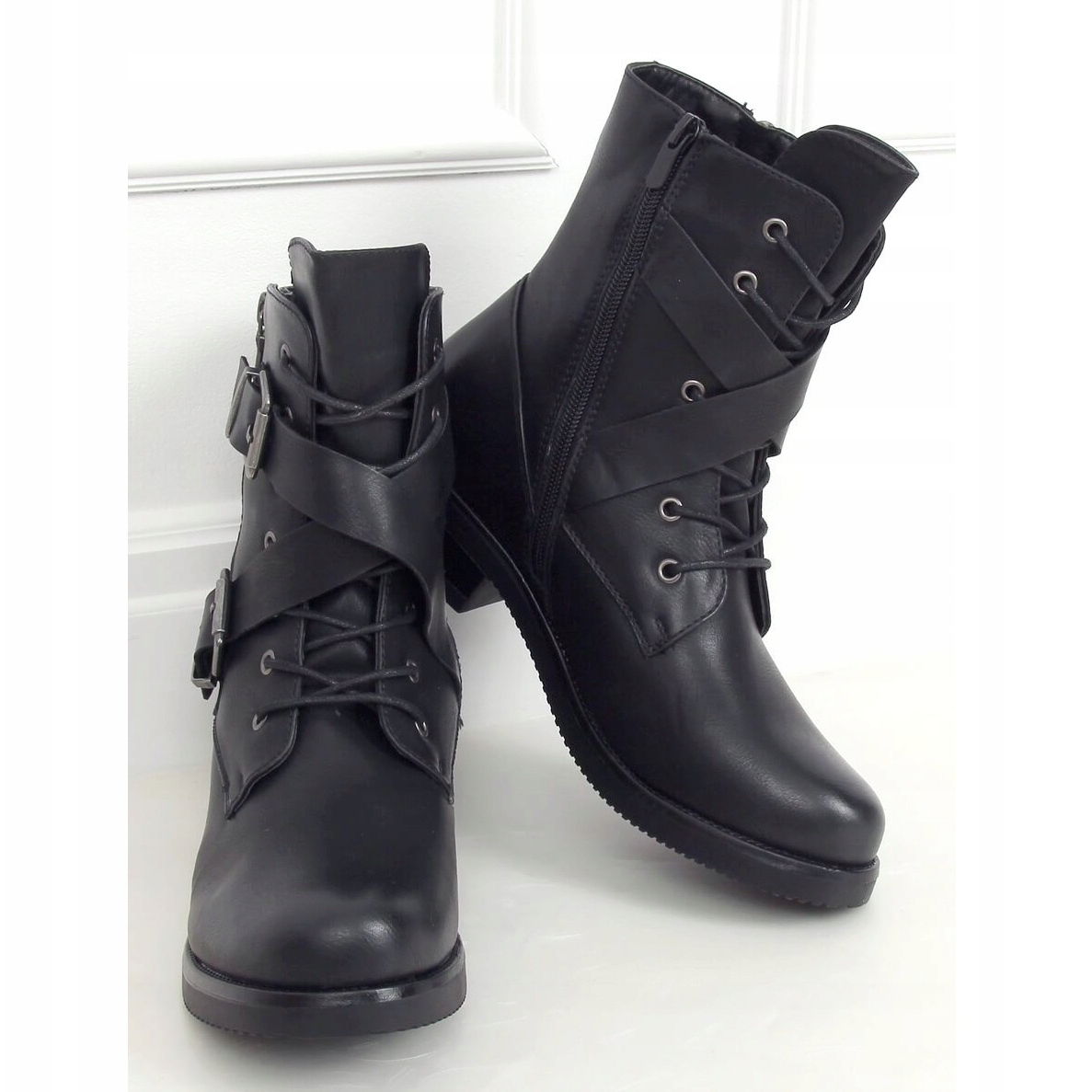 The smooth design and black color make these boots extremely versatile - they will look great both in casual, everyday outfits and more elegant arrangements. It is also worth paying attention to the fashionable crossed straps with buckles, which give them a characteristic military style.